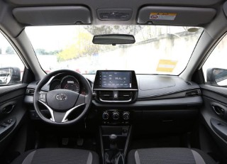 整个内饰设计得比较简洁,整体以黑色为主、银色镀铬条为辅,属于比较常见的设计风格。中控台的造型也很简约,搭载了一块酷炫的悬浮式中控屏,实体按键也设计得比较小巧,再加上经典的三幅式方向盘,给人的感觉还是挺不错的,不会让人感觉到廉价。说实话,丰田威驰还是比较有良心的,即便是最低配版本,也搭载了中控屏、上坡辅助等实用性功能。