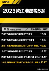 11月8日,江淮汽车宣布,2023款星锐5系新增商旅版上市。据悉,该车可提供云内D20TCIF1和江淮锐捷特HFC4DB3-2E4两种型号的2.0T柴油发动机,官方指导价分别为16.27万元和16.77万元。