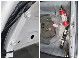 于是东子我把后盖拉开,检查内部的情况,不出所料,大家可以看到后盖的固定螺丝有拆卸,但好在没有更换;并且备胎槽没有变形修复过的痕迹,说明碰撞并不严重,保险起见,还是拉一下胶条。