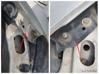 可以看到焊点还是原厂焊点,只不过被夹住拉过一下,有轻微的钣金痕迹;并且受力之后原厂胶有开裂,但是对用车没什么大的影响,也算不上事故问题。