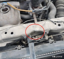 接下来拆开塑料饰板,发现水箱框架有钣金修复的痕迹,并且水箱冷凝器是更换过的。为什么能一眼判断更换呢?是因为前两天东子我才看过一辆进水的CRV,知道水箱上面的生产日期是下面这个样子的。