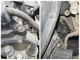 可以看到发动机的机脚螺丝有拧动,气门室盖没有动过;进气支管螺丝没拆卸,应该是更换了机脚胶,日系车发动机变速箱没得说,不过机脚差点。目前机舱内部也没有明显的渗油漏油现象,整体情况还不错,一会儿上架的时候再从底盘检查一下。